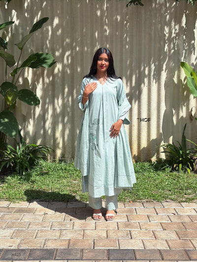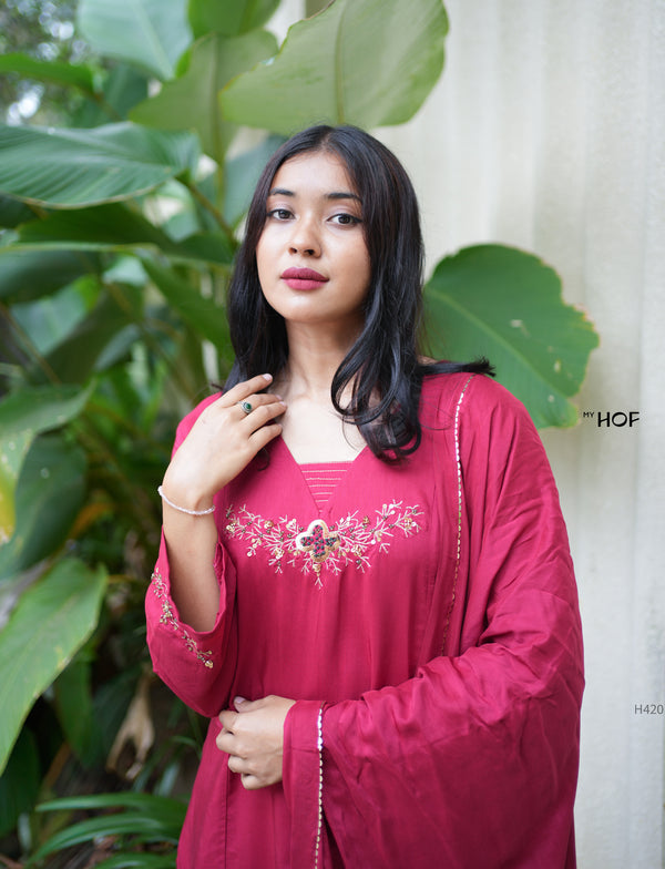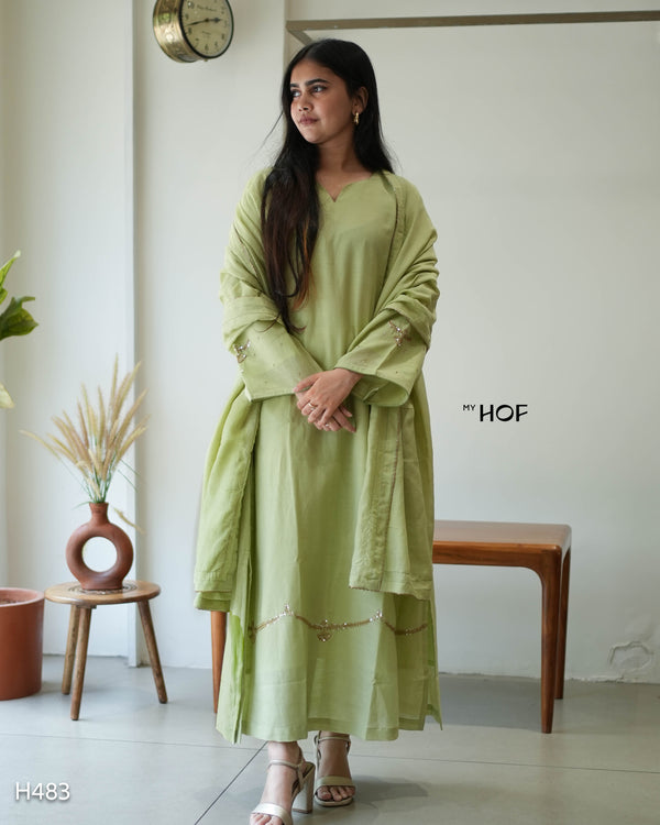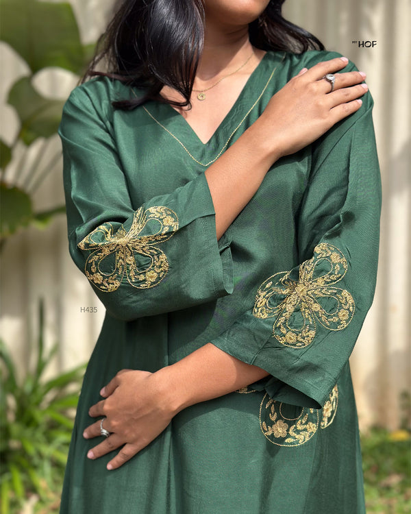 MY HOF Dark Olive Green Suit Set With Hand Embroidery In Crepe