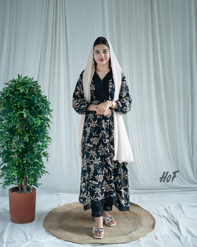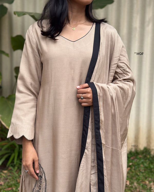 MyHof Chikku Suit Set With Black Embroidery In Muslin