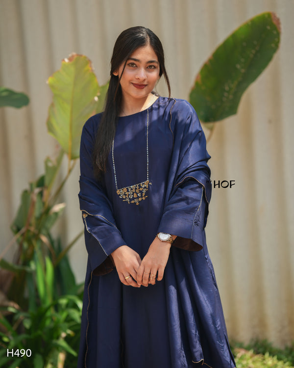 MY HOF Deep Purple Suit With Floral Hand embroidery