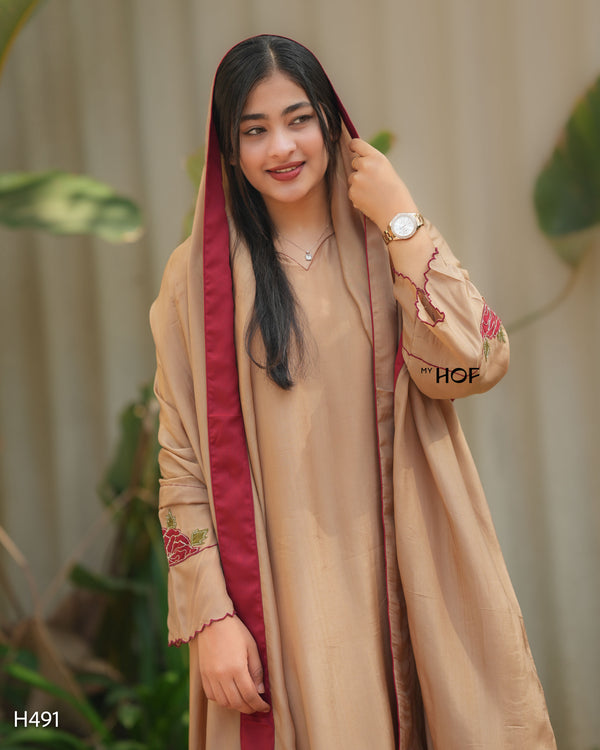MY HOF Maroon Suit Set With Hand Embroidery In Organza