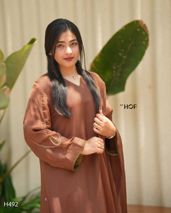 MY HOF Golden Beige Suit Set With Hand Embroidery In Crepe