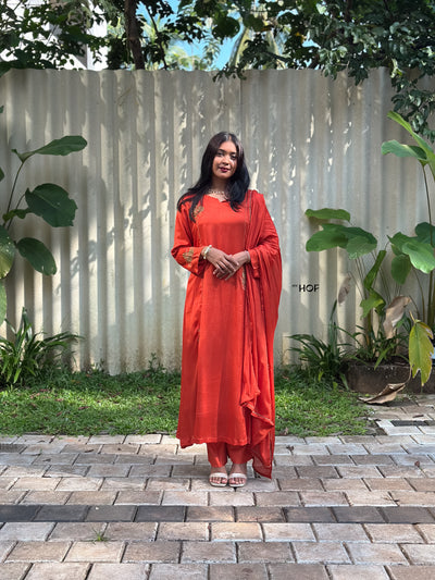 MyHof Chocolate Brown Suit Set With Floral Embroidery In Organza