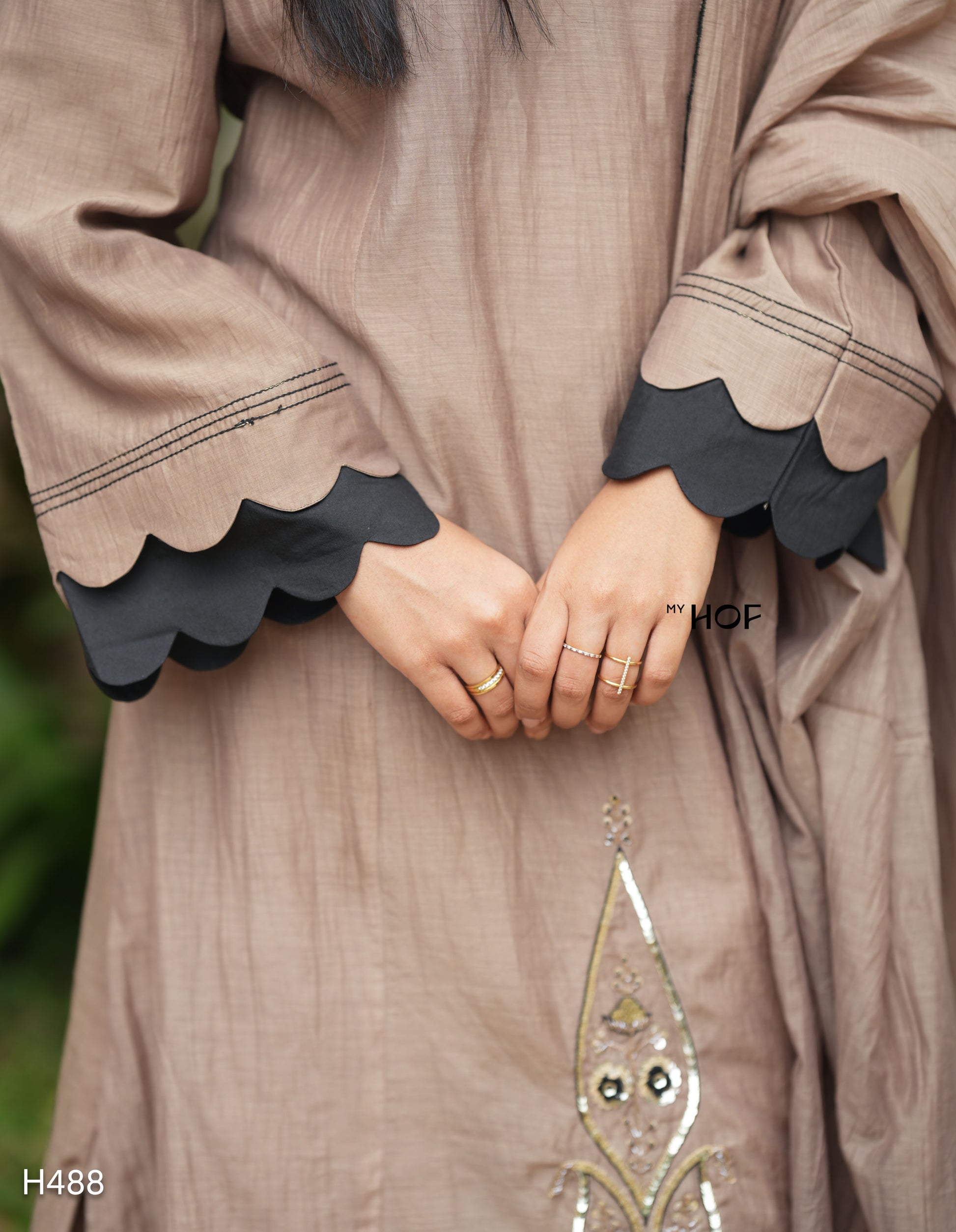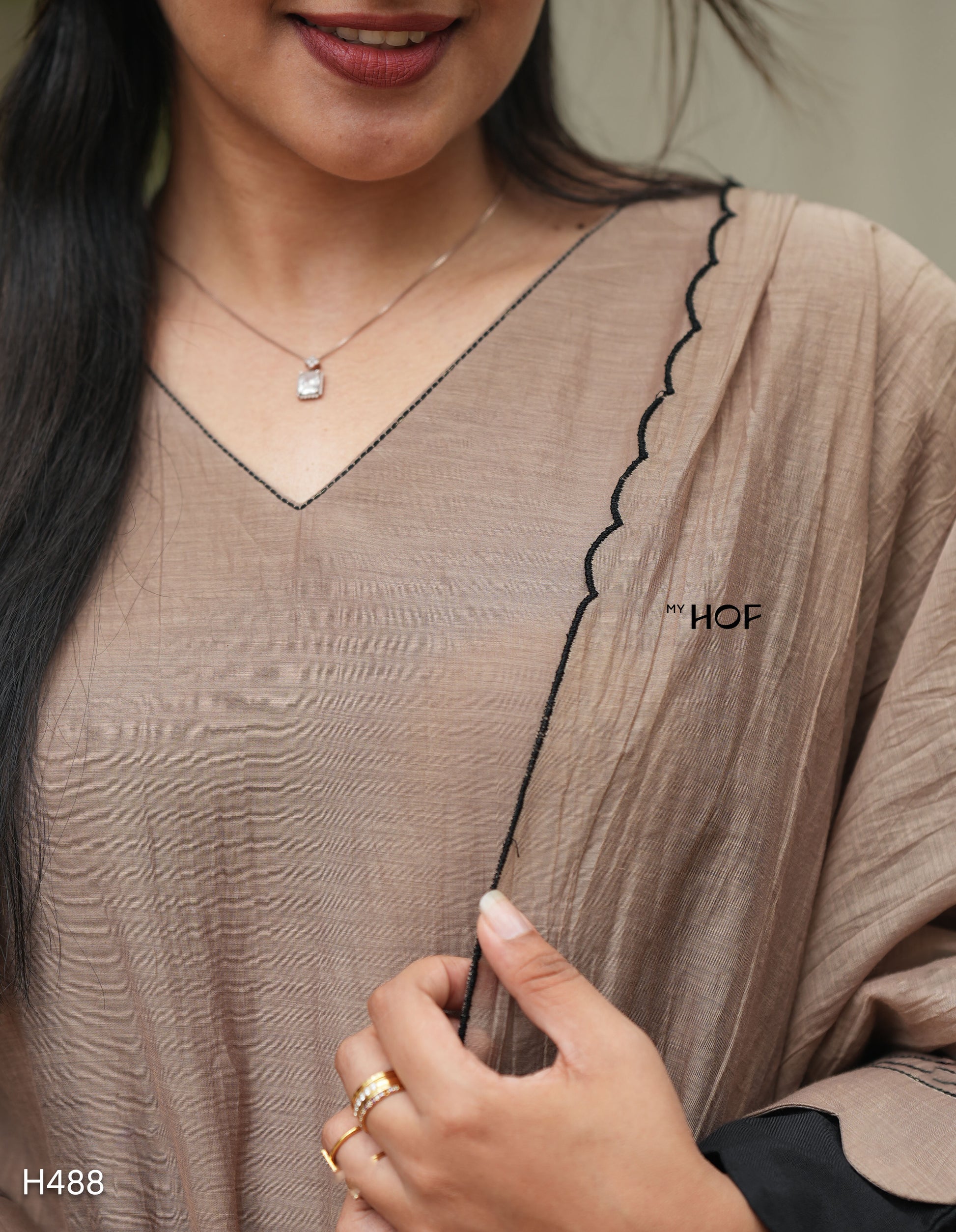 MY HOF Chikku Suit Set With Hand Embroidery In Chanderi
