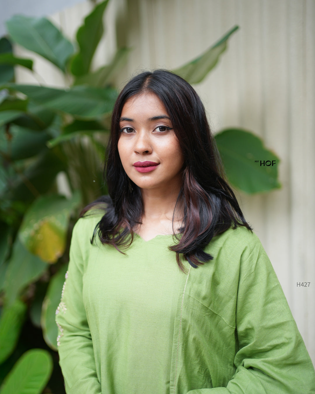 MY HOF Launching Green Suit Set In Linen and features a simple V-neckline with clean, minimal finishing and The kurta comes with Full sleeves that have delicate floral thread embroidery along the outer armWith its straight-fit silhouette and smooth drape, the top keeps the look effortless and comfortable. matching straight pants with scalap and a coordinated dupatta in the same fabric.
