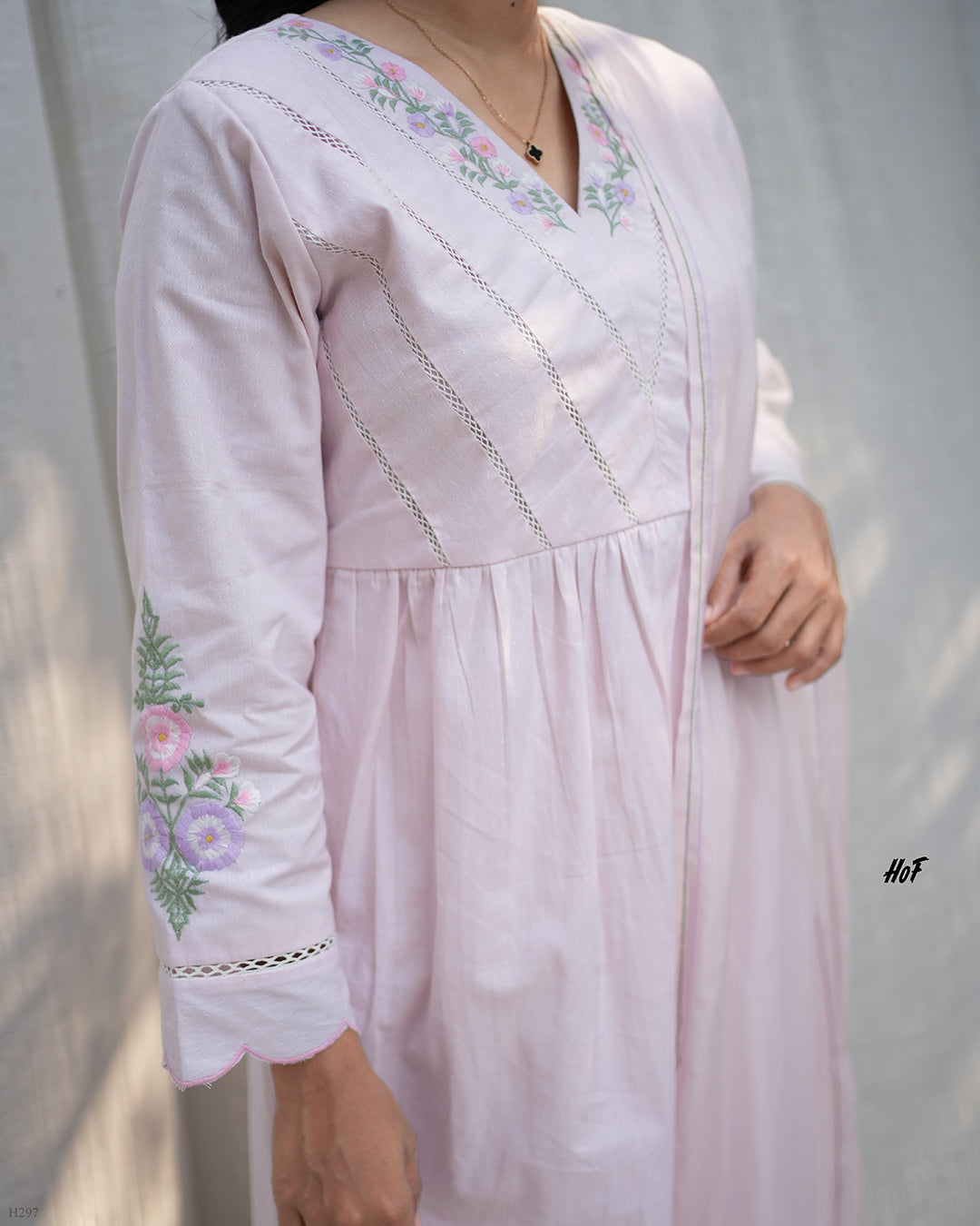 MyHof Baby Pink Suit Set With Floral Embroidery In Cotton