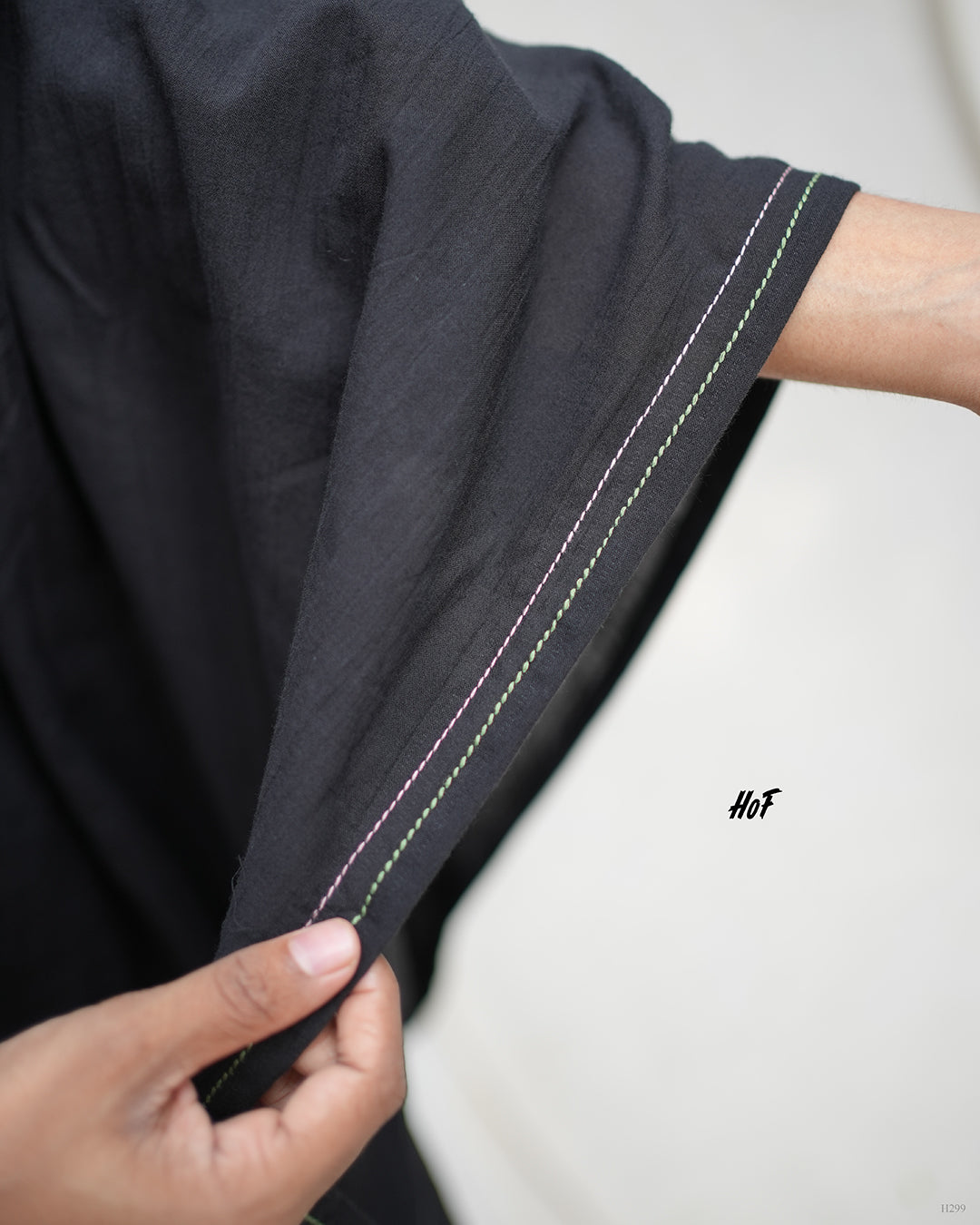 Celebrate this Eid in style with MyHof’s Black Suit Set in Premium Cotton Hakoba Fabric! Designed with a slitted top featuring intricate floral embroidery thread work, this elegant piece blends tradition with modern sophistication. Perfect for festive gatherings! ✨🌿