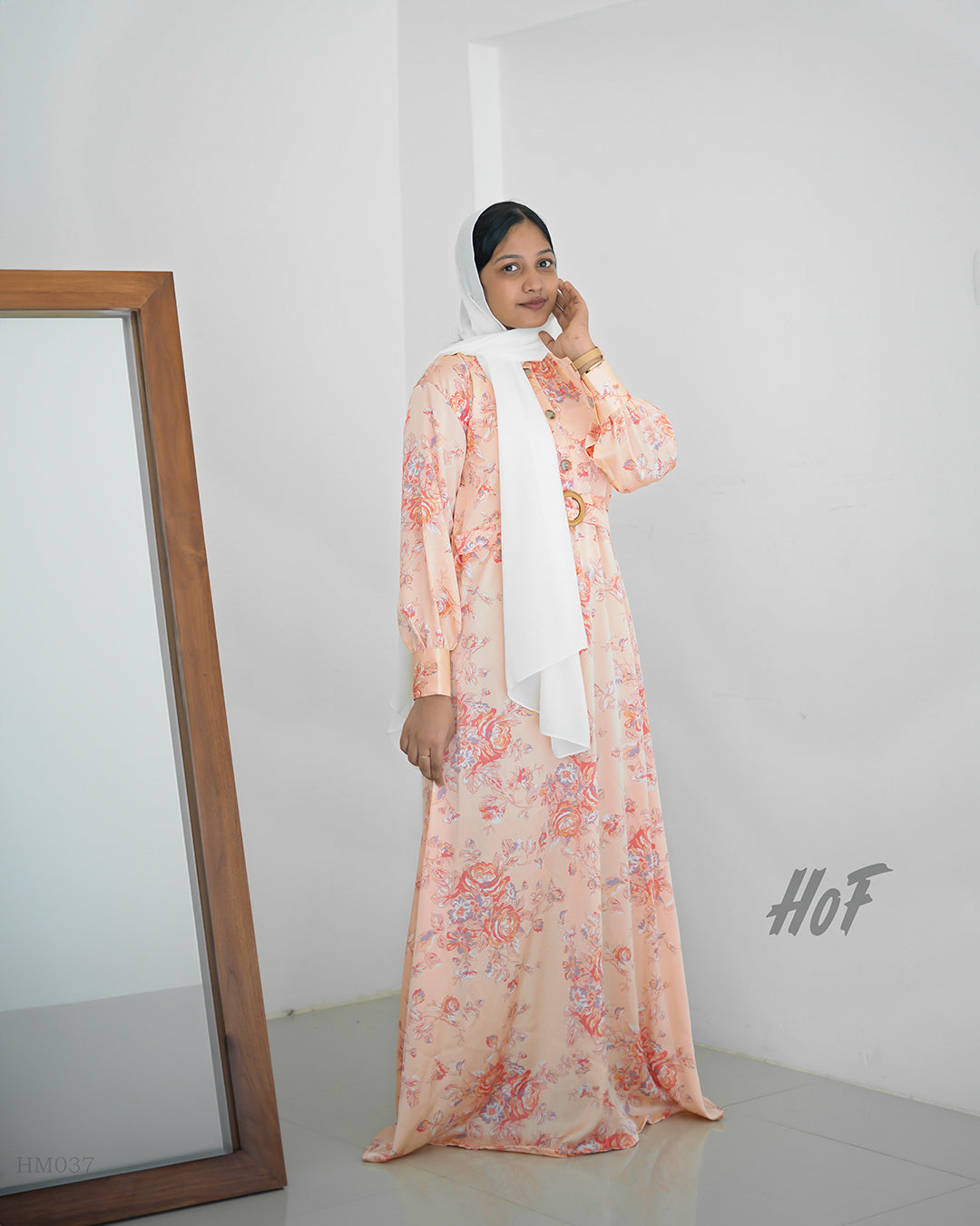 MyHof Modest brings you an elegant long gown in a beautiful glossy satin fabric with delicate floral prints 🌸. Designed for both style and comfort, this gown is also feeding-friendly, making it a perfect blend of practicality and grace 💫.
