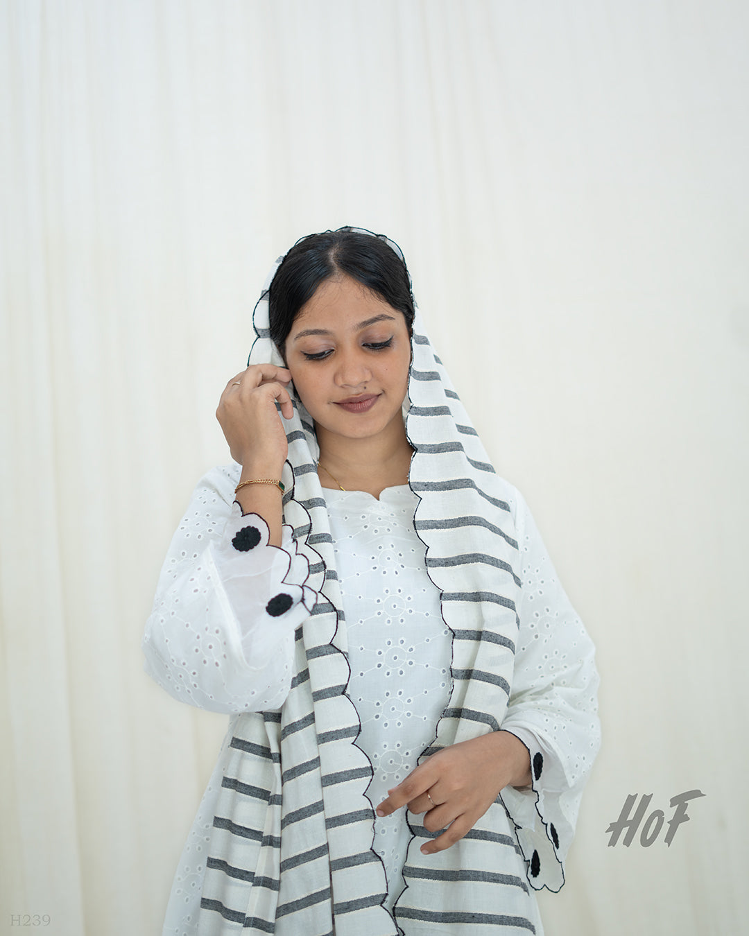 🤍 New Launch Alert! 🤍 Introducing MyHof's White Suit Set in Cotton Hakoba! 🌿 This elegant suit set, crafted from soft cotton hakoba fabric, exudes grace and charm. Paired with a contrasting black striped dupatta, this ensemble perfectly balances timeless elegance with modern style. Ideal for any occasion, this white suit set brings a fresh, sophisticated look to your wardrobe. Shop now and step out in effortless style! 🖤✨