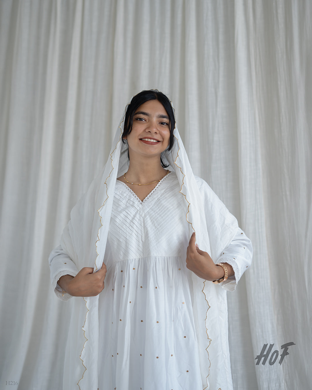 Discover our new suit set in a stunning white and mehandi green combination. Featuring minimal yet elegant green thread , this set offers a clean and refined look. Made from pure muslin fabric, it includes a matching dupatta and bottom. Perfect for a fresh and sophisticated style!